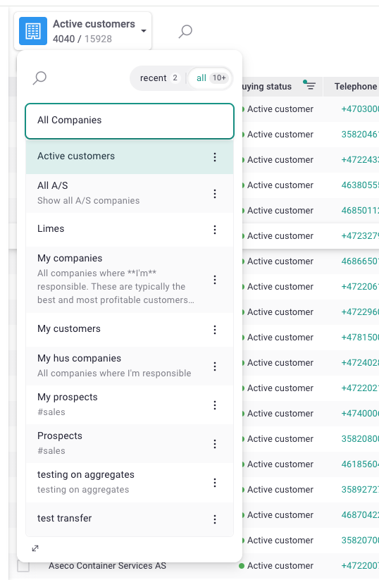It is often relevant to only work on a subset of all the data available in the CRM system. Such subsets can be defined with filters.